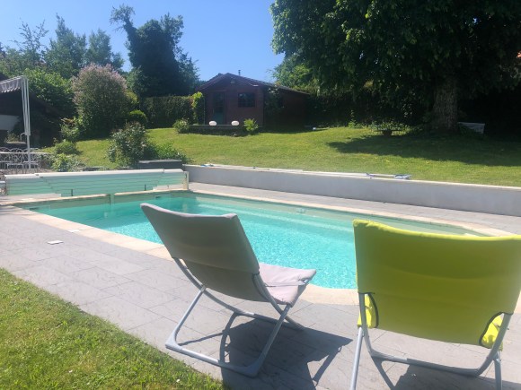 Le jardin de 20 ares comprend une piscine 4mx8m, une table de ping-pong, un sauna, un pool house avec kitchenette et 2 terrasses avec salon de jardin : l’une accessible depuis le salon et la seconde avec BBQ et four à pizza.