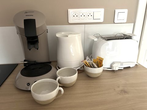 Le gîte Eglantine pour une ou deux personnes a ouvert en décembre 2022, après une année de travaux qui ont transformé une chambre d’hôtel en un charmant studio. L’accès se fait par la rue de Houppach et le gîte est situé au premier étage, à l’angle du bâtiment et donc avec deux fenêtres lumineuses. Le lit double peut être séparés en deux lits simples en 90x200cm ou réuni en 180×200 selon le souhait du client.