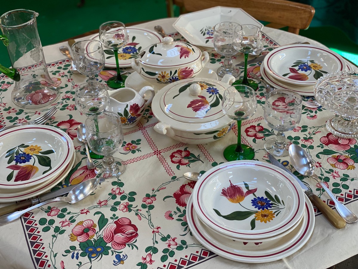 Les Tables de Béatrice à Mulhouse, c’est un dépôt de 200 m2 qui propose quelque 3000 références de vaisselle d’occasion de qualité : assiettes, couverts, verres, nappes et autres objets liés aux arts de la table. La vaisselle vintage date des années 1900 à 1970.