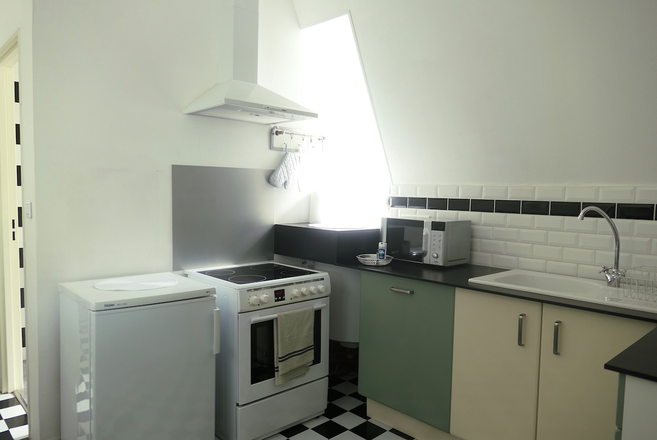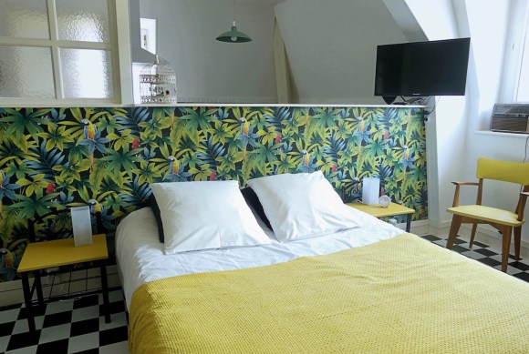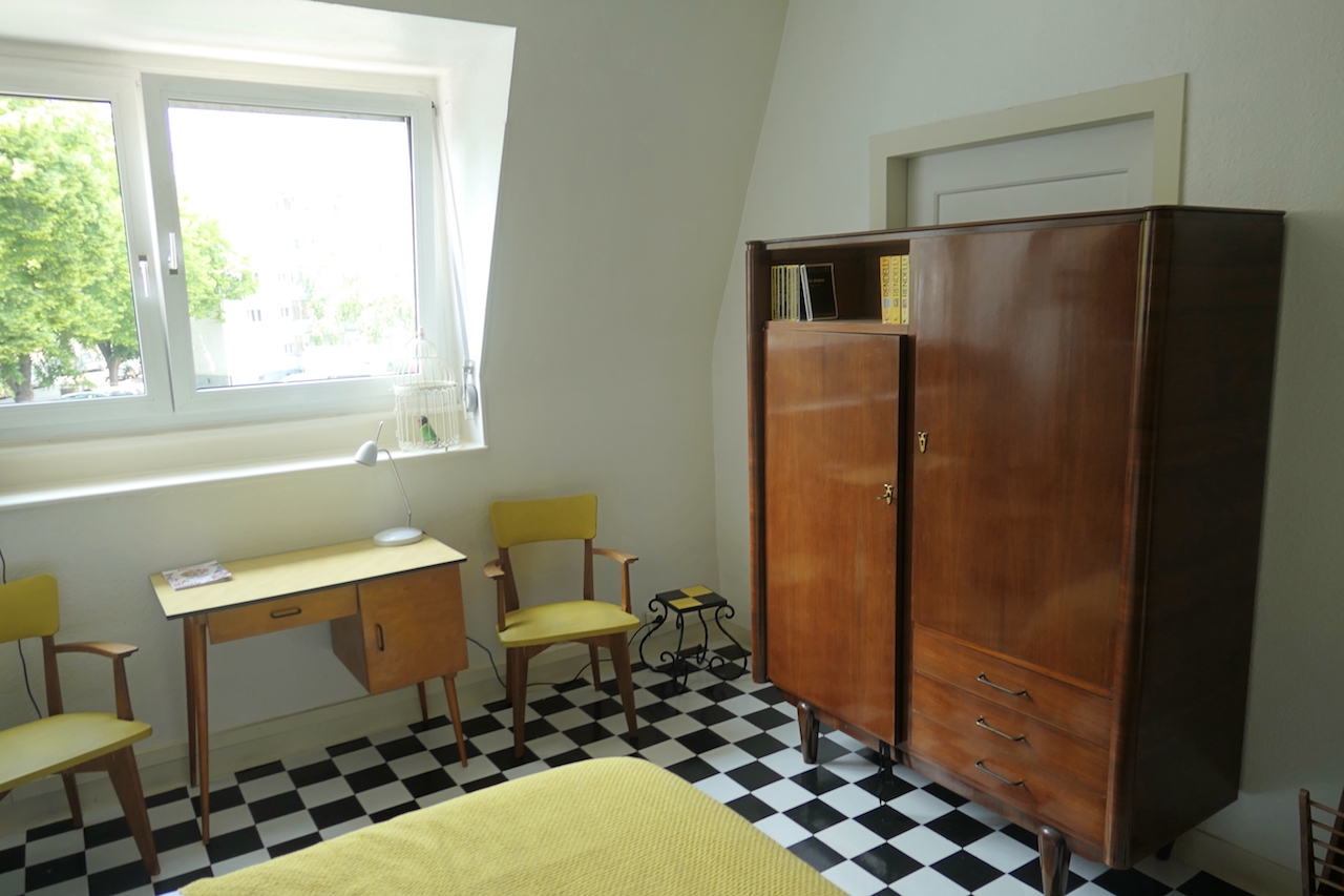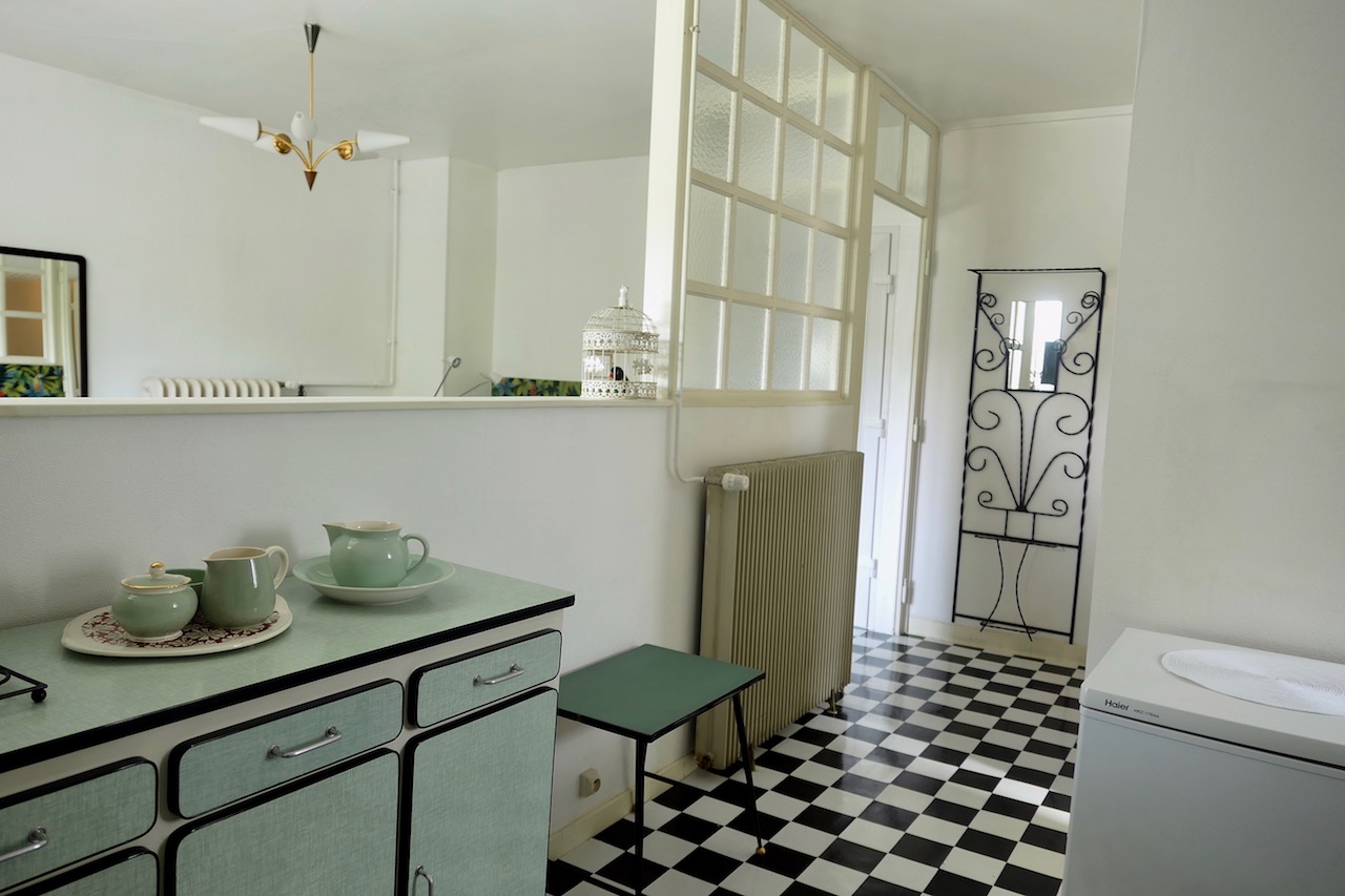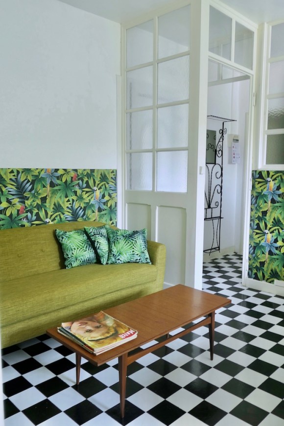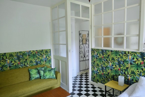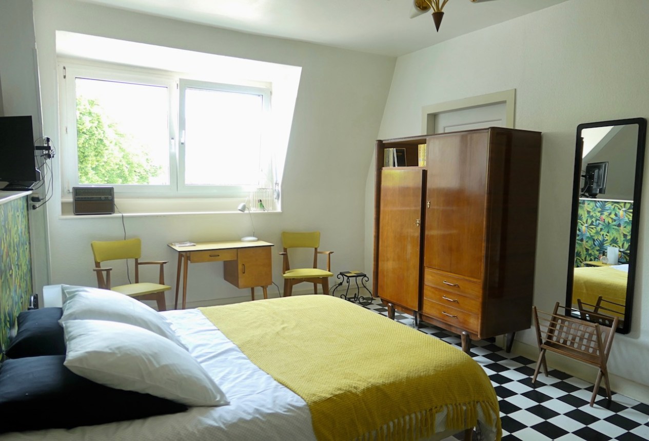 Petits défauts de peinture, tables de nuit à changer, réparations diverses, et surtout un bon coup de frais dans la déco : le studio Sixties a fait peau neuve après 4 ans d’ouverture pour des courts ou moyens séjours en ville. Notamment grâce au coin salon qui a trouvé sa place dans les 35 m2 du studio. Gîte urbain par excellence, il est doté d’un grand parking et d’un accès facile au centre-ville de Mulhouse comme à l’autoroute vers Colmar ou Bâle. Et il plaît aux jeunes, comme aux plus âgés qui se souviennent de la décoration sixties de leur enfance – ou celle de leurs parents.