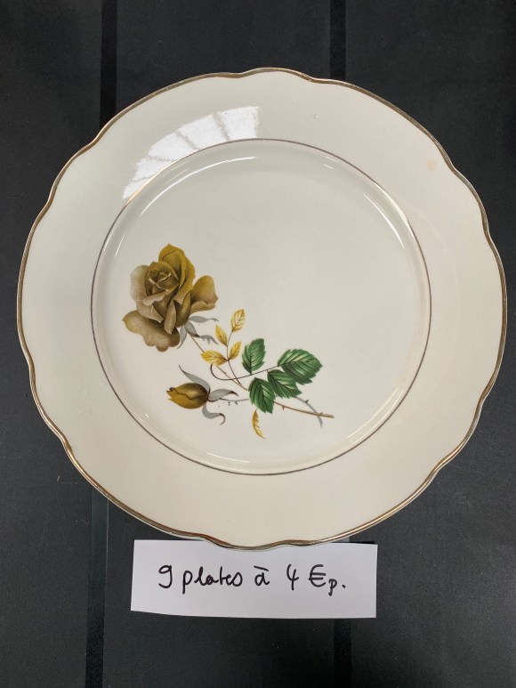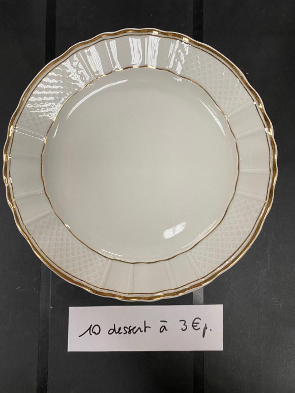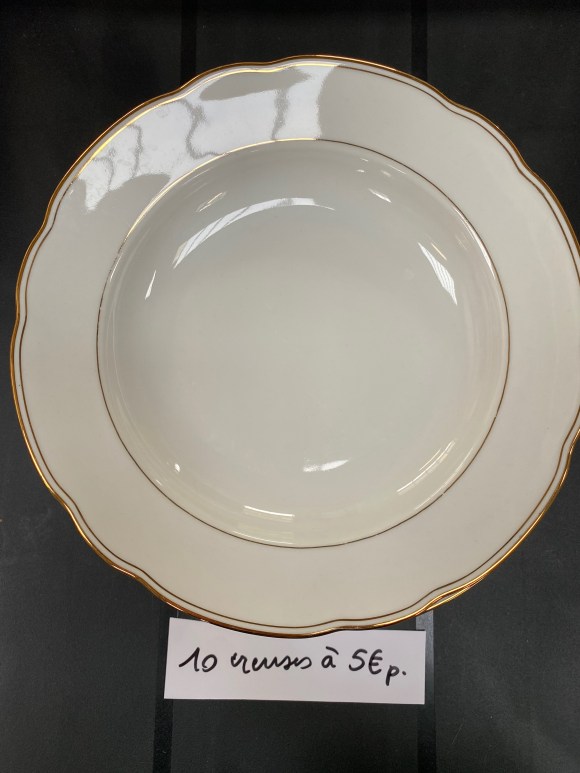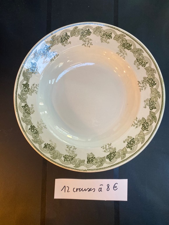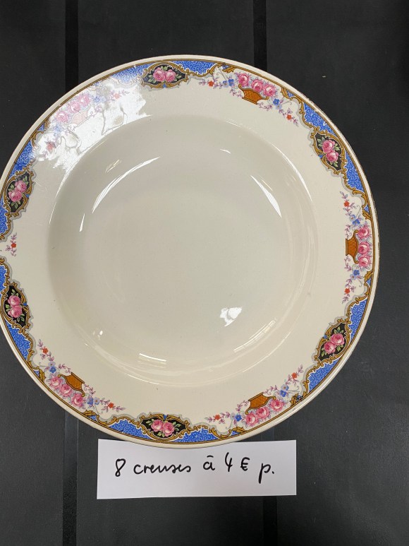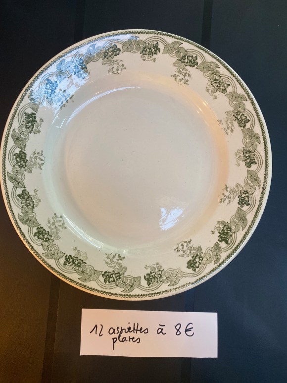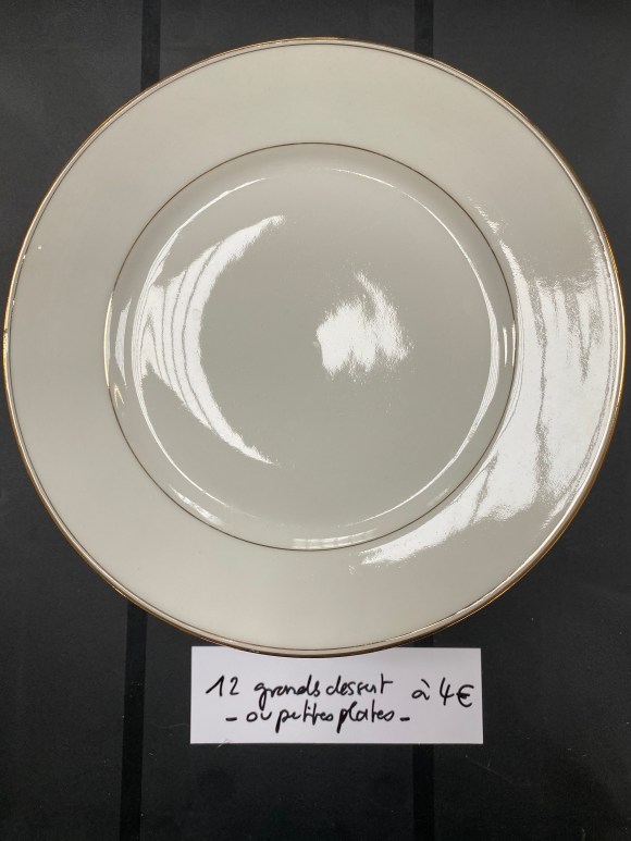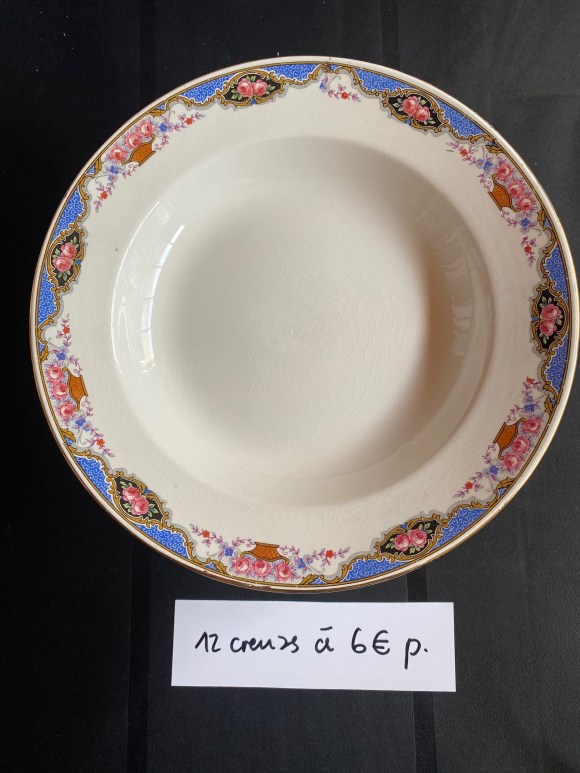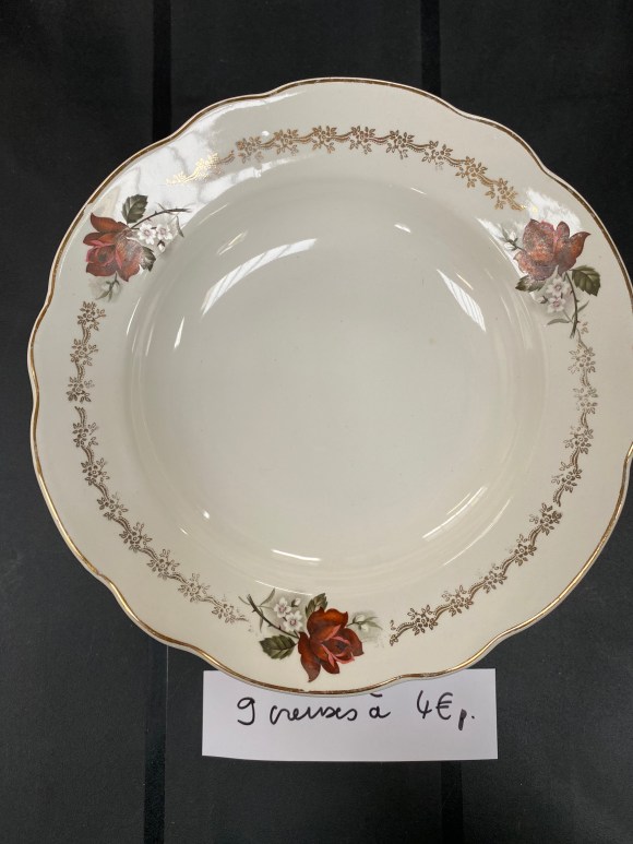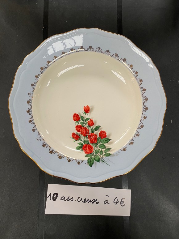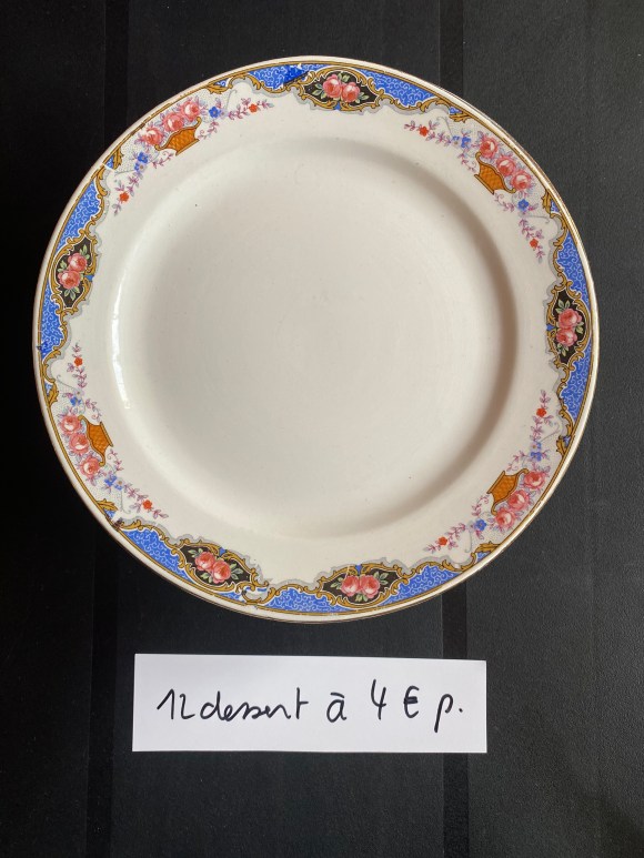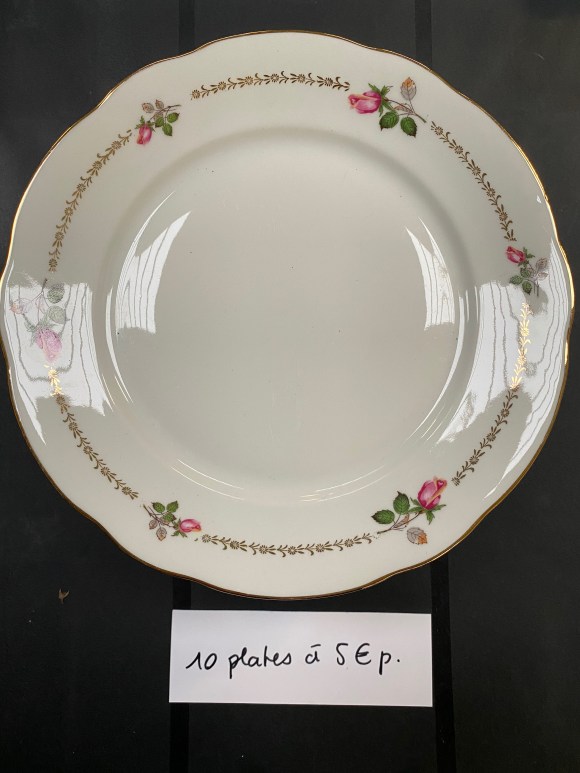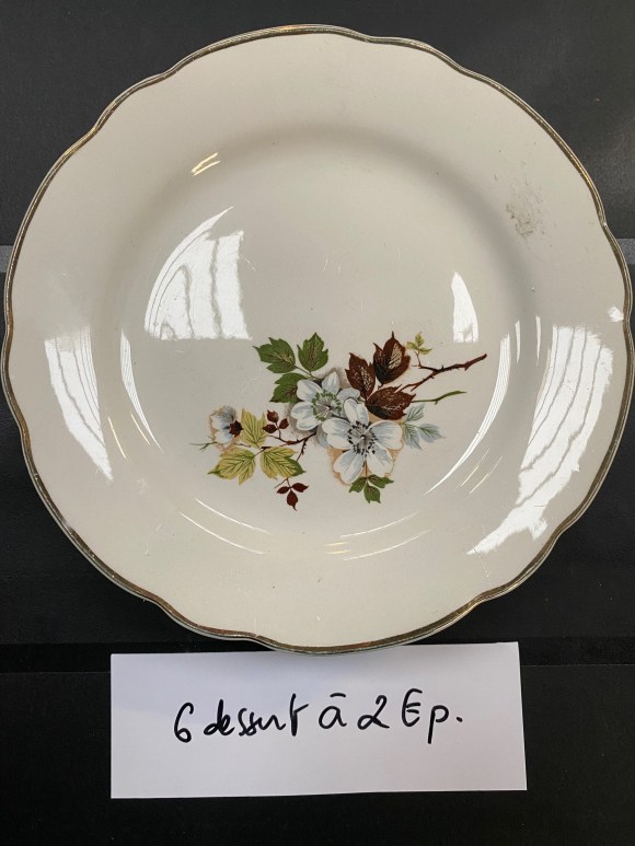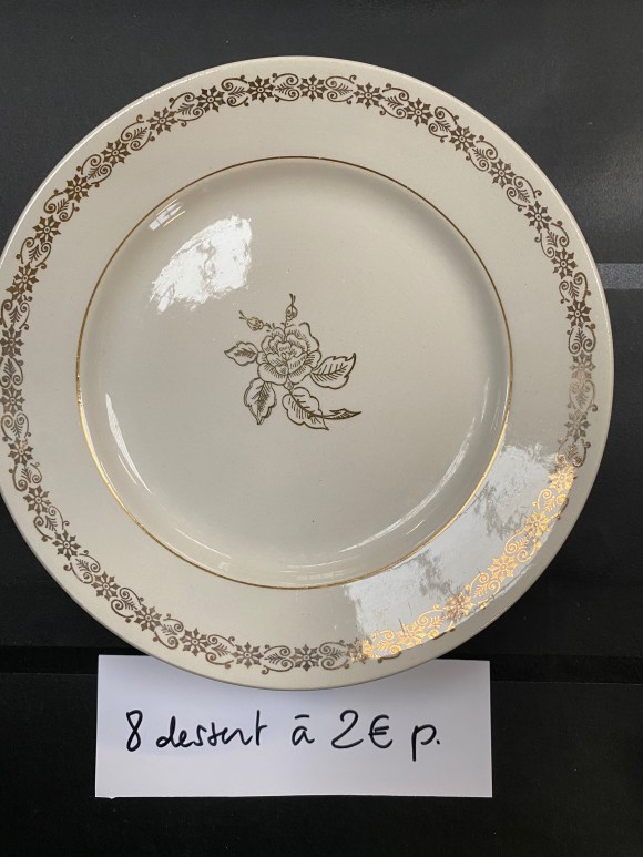 Argenterie, vaisselle, nappes, verres, tables…. ici il y a de quoi changer le décor du quotidien à peu de frais, en service de table complet ou dépareillé. Voici une galerie de photos d’une sélection d’assiettes vintage actuellement en stock, majoritairement en porcelaine des années 1940 à 1965. Attention, le stock bouge vite, que ce soit les services de table en faïence ou en porcelaine.